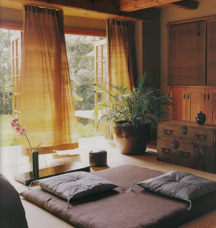 A therapeutic and refreshing design, Zen decor emphasizes natural wood/stone elements, low ground-level furniture, and open breathable spacing. It is one of our favorites, having covered an acclaimed NYC penthouse and how-to guide in the past.