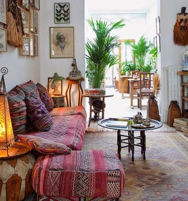 The Bohemian (or Boho) design captures the carefree and experimental essence of the namesake lifestyle. It features heavy use of vibrant colors, especially those with red or purple tones. The key is to carefully present a purposefully “messy” look. Layer on textiles (throws, pillows, rugs, tapestry) for a warm feeling.
