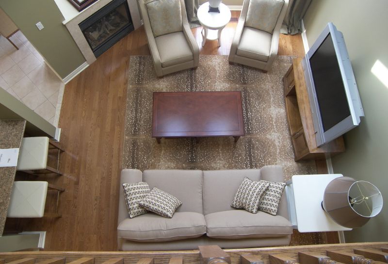 Depending on the shape of your living room, you need to establish where the center point should be. This isn’t necessarily the center of the room. It’s usually where the coffee table is and you can easily change it according to your desires.