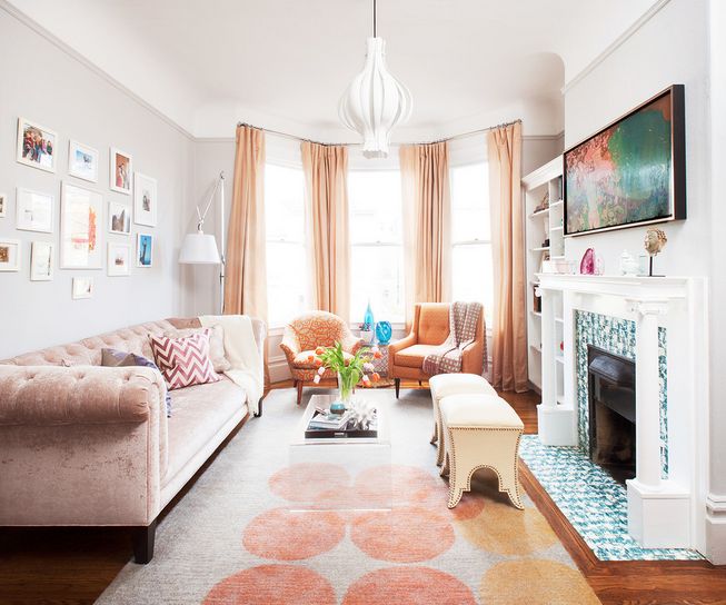 Once you’ve decided which element should be the focal point in your living room, highlight it by placing the seating units directly in front of it. This way, those sitting there can admire whatever it is you’ve chosen to highlight. {found on coddingtondesign}.