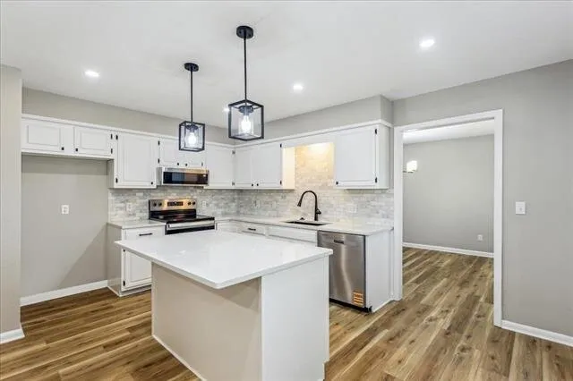 Nestled in a well-established west side neighborhood known for its mature trees and charm, this spacious and modernized 2-story home offers both comfort and style. The updated kitchen is a standout, featuring sleek quartz countertops, a stylish mosaic tile backsplash, all-new stainless steel appliances, and a convenient eating bar — perfect for quick meals or entertaining guests. The main floor offers a thoughtful layout with a living room, formal dining room, and a family room that opens to the kitchen. A half bath with a laundry room adds convenience, and there’s also a flex room that can be used as a home office, playroom, or extra storage space. Upstairs, you’ll find three generously sized bedrooms, including a primary suite with a walk-in closet, double vanity, and a spacious walk-in shower. The finished basement offers even more living space with an additional family room — perfect for movie nights, a kids’ play area, or entertaining guests. You’ll also appreciate the large storage room and an extra room ideal for a workshop, second office, hobby space, or home gym — giving the family plenty of room to spread out. Step outside to enjoy the fenced backyard, large covered patio, 2-car garage, and an oversized driveway — ideal for gatherings, hobbies, or extra parking.