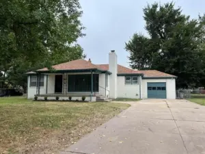 Located in south central Wichita, this charming ranch home boasts plenty of curb appeal with a whitewashed brick exterior, well-manicured landscaping, and a covered front porch that provides the perfect spot for a seating area.