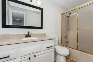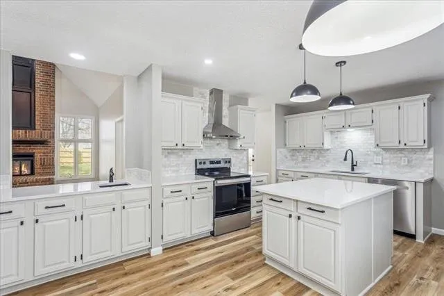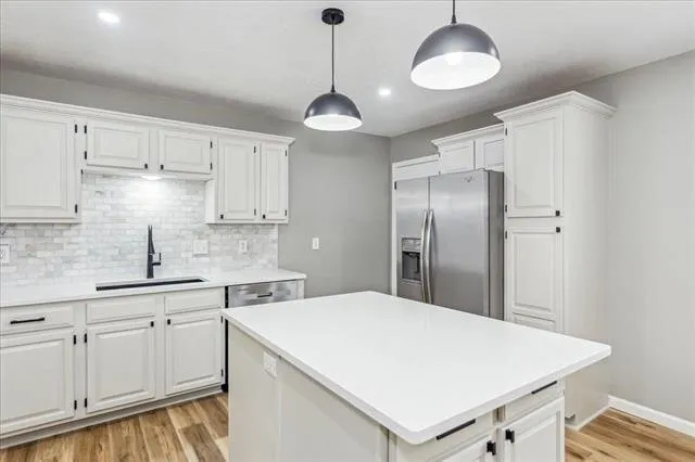 As you enter, you’ll be greeted by a bright, airy atmosphere that immediately feels like home. The main floor boasts vaulted ceilings in the spacious living room, complete with a cozy fireplace. The kitchen is a chef’s dream, offering quartz countertops, a large island, a pantry, and an eating area—plus, all appliances stay! For added convenience, the main floor also features a laundry room, a 1/2 bath for guests, and a master bedroom retreat. The master suite is a true oasis, with a generous en suite that includes a double vanity, a relaxing tub, and a separate shower. Throughout the home, you’ll find all-new flooring and fresh paint, creating a modern and inviting ambiance. Upstairs, you’ll find two additional bedrooms and a full bathroom, offering plenty of space and privacy for family or guests. The finished basement features a spacious bedroom and bathroom, as well as tons of extra storage space. Additional highlights include a 2-car attached garage and a 1-car detached garage, providing plenty of room for vehicles or storage.