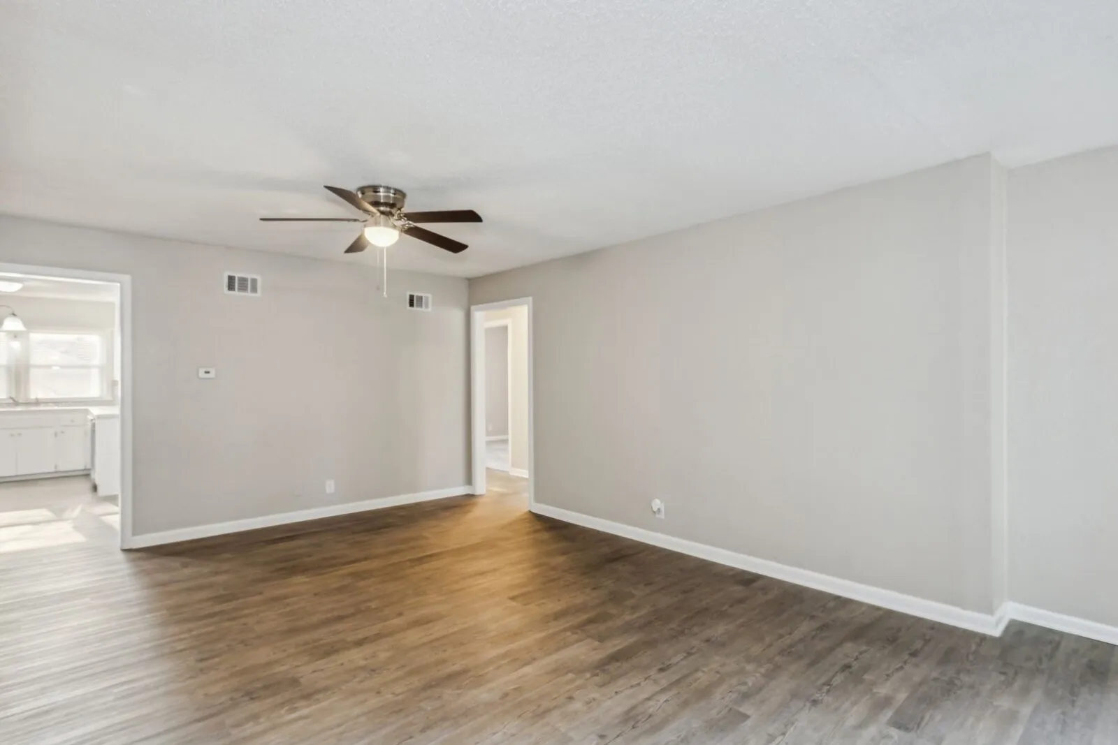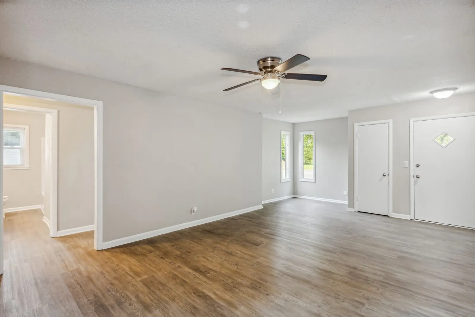 This home has been completely updated with fresh paint and new flooring. Enter into a spacious living room with plenty of room to spread out! The remodeled eat in kitchen has laminate counters, sleek tile back plash and includes appliances! Plenty of storage space with a pantry and Washer/Dryer hook ups. The bathroom has been remodeled with all new fixtures. A large 2-car garage complete this great home in a convenient location. Come take a look at this home before it’s too late!