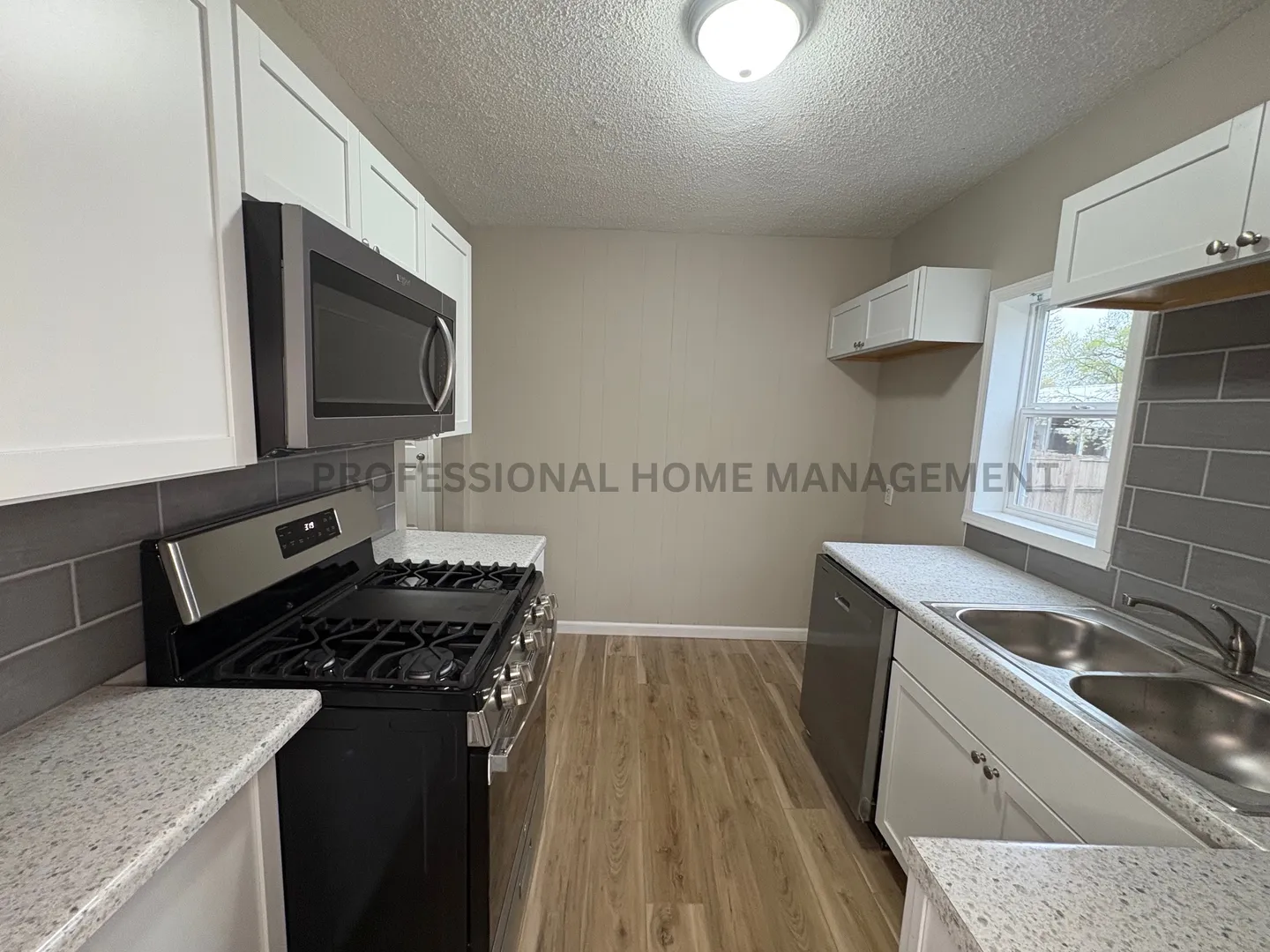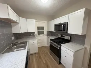 This charming 2-bedroom, 1-bathroom home offers the perfect blend of modern updates and functional space. The property features two additional bonus rooms in the basement—ideal for a home office, gym, or entertainment area. Nearly everything in the house has been completely renovated, from the sleek flooring to the fresh paint and upgraded fixtures. The heart of the kitchen boasts a beautiful set of stainless steel appliances, including a stove, dishwasher, and microwave, ensuring a contemporary and efficient cooking experience. This home is a true gem, offering both comfort and versatility, with the added bonus of extra space to make your own. This house is ready to welcome you home.