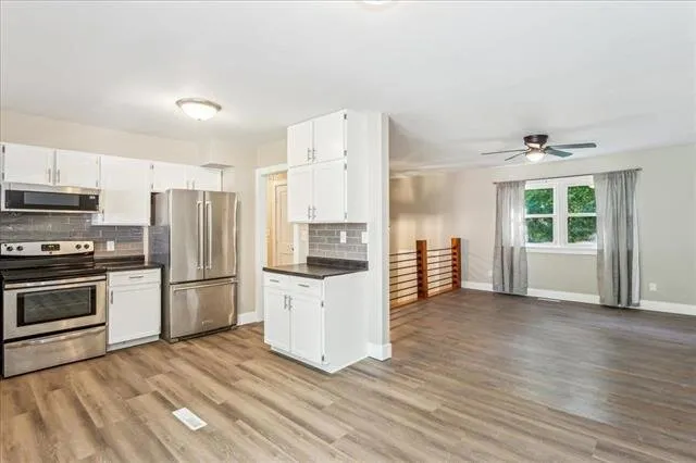 Step into this stunning remodeled home featuring a stylish, updated kitchen complete with stainless steel appliances and a sleek tile backsplash. The living room, dining area, and kitchen flow together seamlessly, creating a bright, open-concept layout that’s perfect for both everyday living and entertaining. The spacious basement offers a large family room and a second full bathroom with a convenient laundry area. Enjoy the comfort of a 2-car attached garage and a fully fenced backyard with a deck—ideal for outdoor gatherings and summer barbecues. This home blends modern amenities with functional living spaces—move-in ready and waiting for you!
