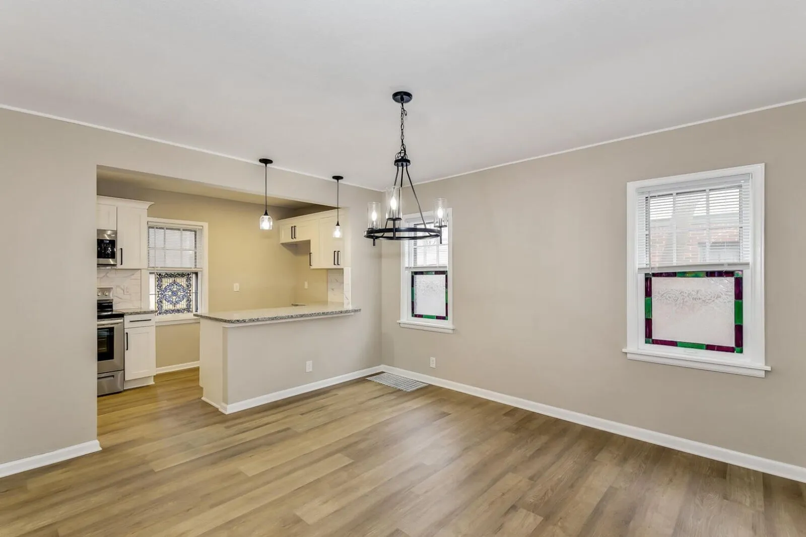 Enter into a living room with vaulted ceilings and natural light shining throughout. Notice the new carpet in bedrooms, luxury vinyl plank flooring in main areas, and fresh, neutral paint all throughout. The entire home has a clean, contemporary look with updates in every room. Into the kitchen, you will love the white cabinets, sleek subway tile backsplash, granite counters, and stainless appliances with eating bar opened to the dining room. The main floor features 1 of the 4 bedrooms and bathroom. The second floor with two spacious bedrooms and remodeled full bathroom complete this great layout. The basement also has one bedroom. Outside you will find the detached 2 car garage and a spacious yard for the kids to play. Easy highway access via Kellogg, and lots of restaurants, you have found a fantastic home in a convenient location. Schedule your private showing and get in to see it today before it’s snatched up.