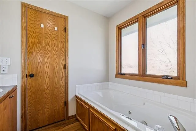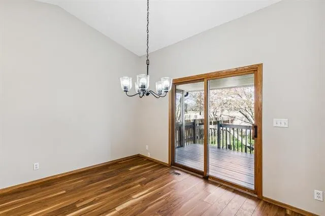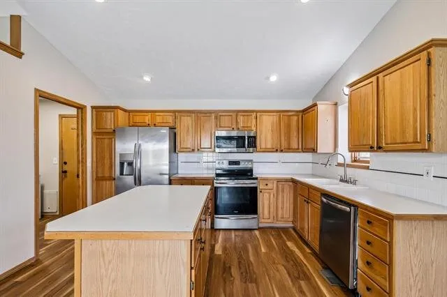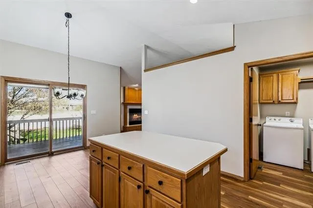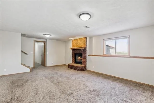 Boasting great curb appeal with a partial whitewashed brick exterior and new exterior paint, this home radiates charm from the moment you arrive. Notice the newer concrete on the porch and driveway as you head up front. Inside, the living areas are graced by soaring vaulted ceilings, creating an airy atmosphere. The living room is centered around a cozy fireplace, perfect for gatherings or quiet evenings. Gleaming wood laminate floors flow throughout the living areas, adding warmth and elegance. The kitchen is a chef or baker’s dream, with tons of cabinet space including a pantry, an eating bar island, and stainless appliances that are included. Adjacent to the kitchen is the dining room, conveniently seated in front of sliding glass doors that open to the back deck, offering a seamless transition for indoor-outdoor entertaining and lovely views while you enjoy a meal. There’s also a conveniently-located laundry room just off the kitchen. The main floor features a spacious master bedroom with brand new carpet, a vaulted ceiling, and an en suite bath that boasts a double vanity, shower, and jetted tub. Two more bedrooms and another full bath complete the main floor. But the space doesn’t end there! Head down to the bright basement with view-out windows, where you’ll find even more room to enjoy. A family room with a brick fireplace provides the perfect spot for relaxation, while a fourth bedroom and third bathroom offer additional accommodations. A bonus room in the basement could be used as an office, home gym, or playroom, catering to all of your needs. With over 2,500 square feet of finished space, this home gives you plenty of room to spread out.