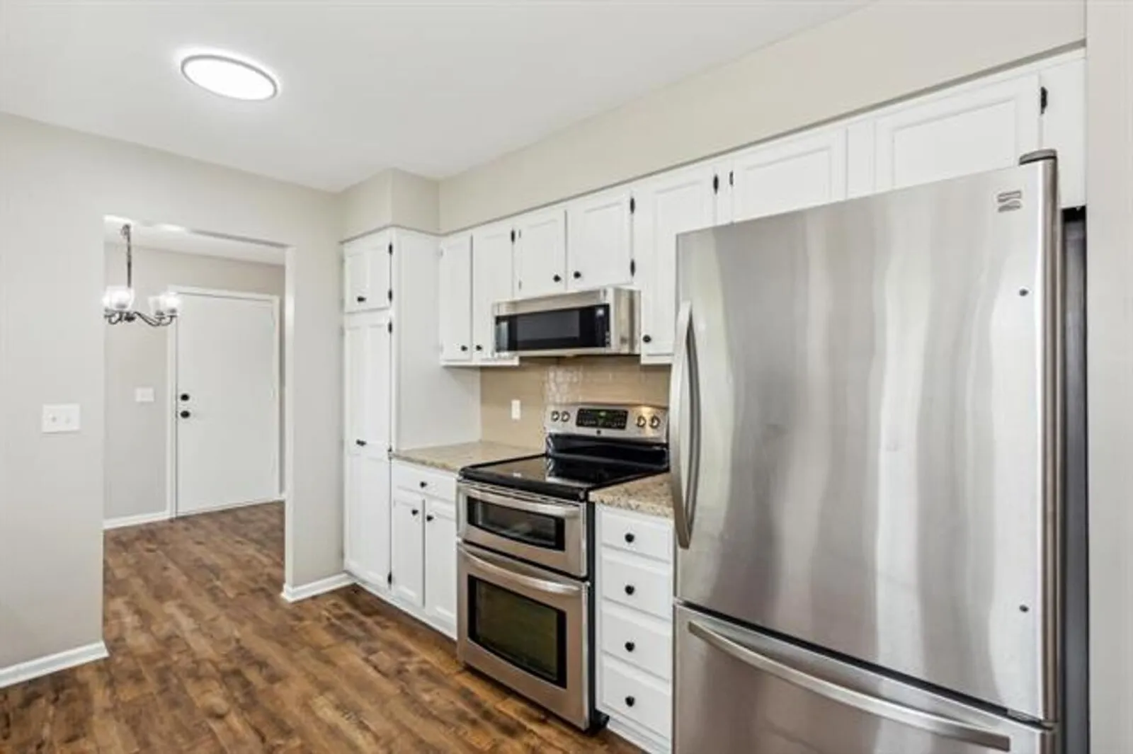 This beautifully remodeled ranch home in Rose Hill offers over 2,600 sq ft of finished living space, plus new features and finishes inside and out. Pull up front and you’ll notice the lovely curb appeal, including fresh exterior paint on the charming partial stone facade. Step inside to find a welcoming living room with a cozy fireplace framed by a striking floor-to-ceiling stone surround and large windows that fill the space with natural light. Fresh interior paint and brand new luxury vinyl flooring flow throughout the main living areas. The well-appointed kitchen offers granite counters, sleek subway tile backsplash, stylish white cabinetry with a pantry, and stainless steel appliances that are all included. The breakfast nook, set by bay windows, is the perfect spot to enjoy your morning coffee while taking in views of the outdoors, and a formal dining room with French doors leads out to the back deck. On the main floor, you’ll find three bedrooms, including the master suite with two closets and a private en suite bath, along with a second full bathroom and a conveniently located laundry room. Head downstairs for even more living space in the spacious family room, which features a second stone fireplace and plenty of room for a home theater, gaming area, or even a ping pong or pool table. A wet bar with an eating bar counter makes this the ideal space for hosting a game night with family or friends. A bonus room provides endless possibilities for an office, home gym, or hobby room. Situated across the street from Perkins Park and close to local schools, restaurants, and more, this home offers both comfort and convenience. Schedule your private showing and come see this one today before it’s gone!
