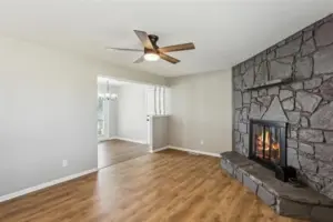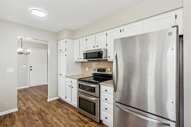 This beautifully remodeled ranch home in Rose Hill offers over 2,600 sq ft of finished living space, plus new features and finishes inside and out. Pull up front and you’ll notice the lovely curb appeal, including fresh exterior paint on the charming partial stone facade. Step inside to find a welcoming living room with a cozy fireplace framed by a striking floor-to-ceiling stone surround and large windows that fill the space with natural light. Fresh interior paint and brand new luxury vinyl flooring flow throughout the main living areas. The well-appointed kitchen offers granite counters, sleek subway tile backsplash, stylish white cabinetry with a pantry, and stainless steel appliances that are all included. The breakfast nook, set by bay windows, is the perfect spot to enjoy your morning coffee while taking in views of the outdoors, and a formal dining room with French doors leads out to the back deck. On the main floor, you’ll find three bedrooms, including the master suite with two closets and a private en suite bath, along with a second full bathroom and a conveniently located laundry room. Head downstairs for even more living space in the spacious family room, which features a second stone fireplace and plenty of room for a home theater, gaming area, or even a ping pong or pool table. A wet bar with an eating bar counter makes this the ideal space for hosting a game night with family or friends. A bonus room provides endless possibilities for an office, home gym, or hobby room.