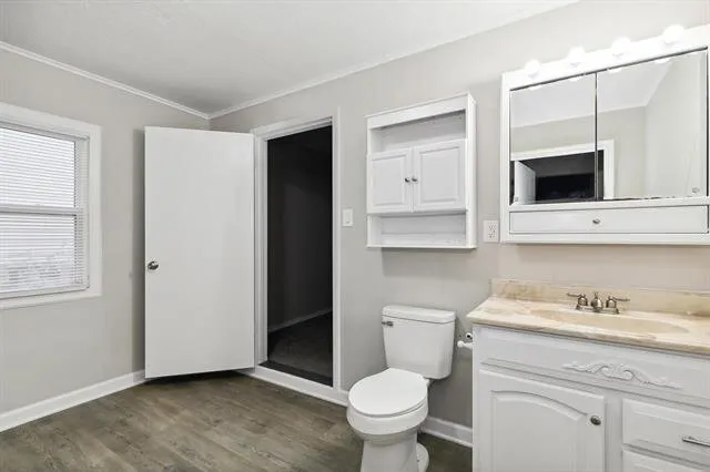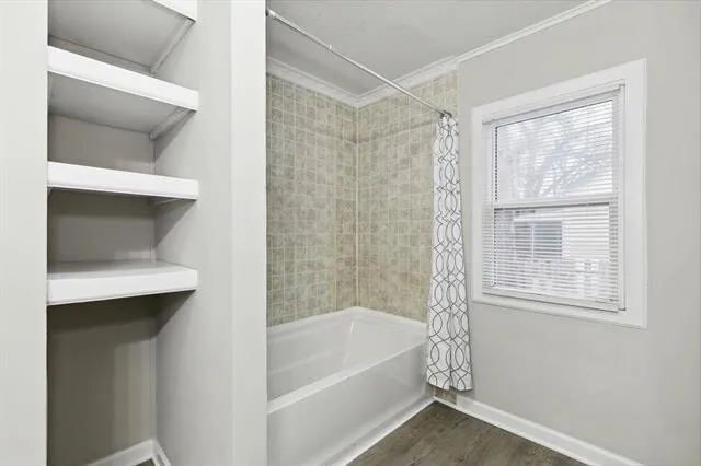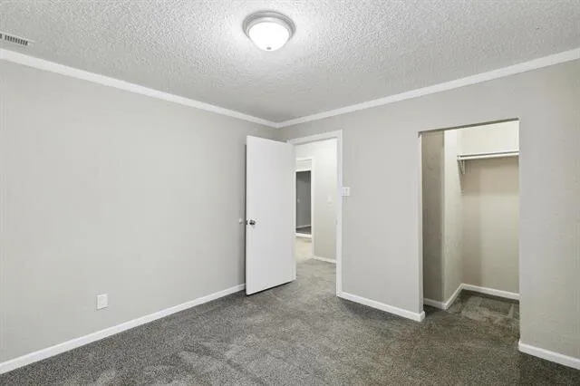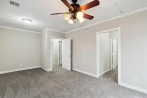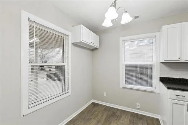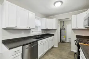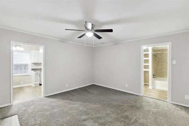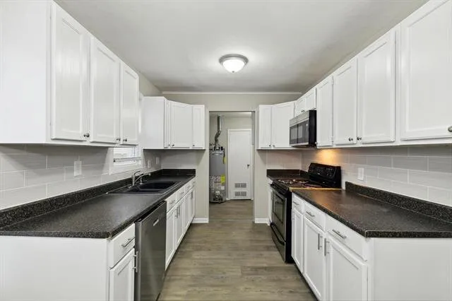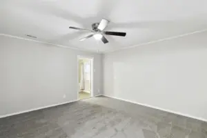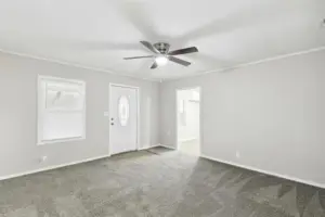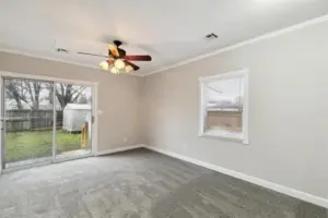 Step inside and check out the fresh, neutral paint, brand new carpet, and brand new luxury vinyl flooring throughout. The sunlit living room has bright windows and crown molding. The well-appointed kitchen offers plenty of cabinet space for storage, stylish subway tile backsplash that adds a contemporary flair, and stainless steel appliances that are included for your convenience. There’s also an adjoining dining area where you can enjoy your morning coffee. The conveniently-located laundry room features built-in cabinets for storage. With four spacious bedrooms, each with sizeable closets, this home offers flexibility. The fourth bedroom with sliding glass doors could serve as an additional living space, if desired. Completing this home is a large full bathroom with built-in storage shelves.