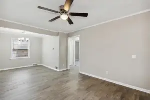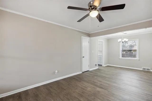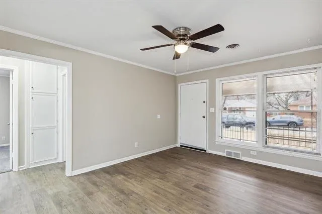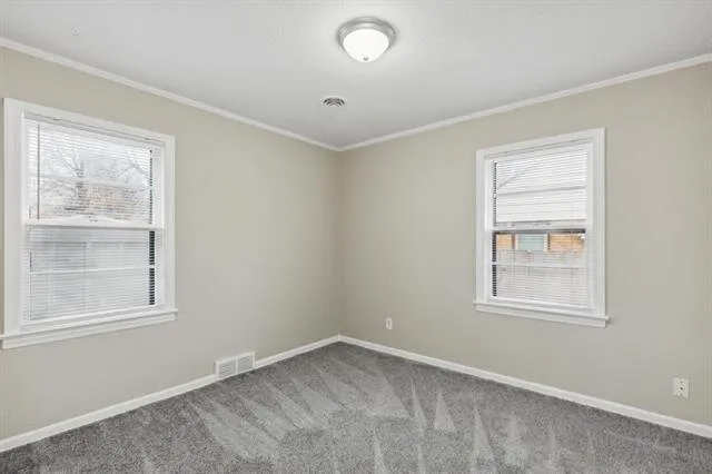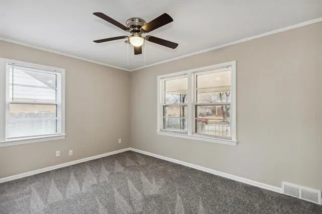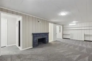 This charming residence boasts a newly whitewashed brick exterior, inviting you in through a covered front porch that offers ample space for a cozy seating area. Step inside to discover modern updates, including brand new luxury vinyl flooring, new carpeting, and fresh, neutral paint throughout. The main floor welcomes you with a bright and airy living room, complete with large windows that flood the space with natural light. Adjacent is a spacious dining room, perfect for entertaining family and friends. The well-appointed kitchen awaits, showcasing abundant cabinet space and stainless appliances that are all included with the home. The main level also features two sizable bedrooms and a full bathroom, providing convenience and functionality. Explore the basement, where a spacious family room awaits, complete with a decorative fireplace and built-in shelves for storage and display. A bonus room with a generous closet adds versatility to the space, and a second full bathroom ensures comfort for all.
